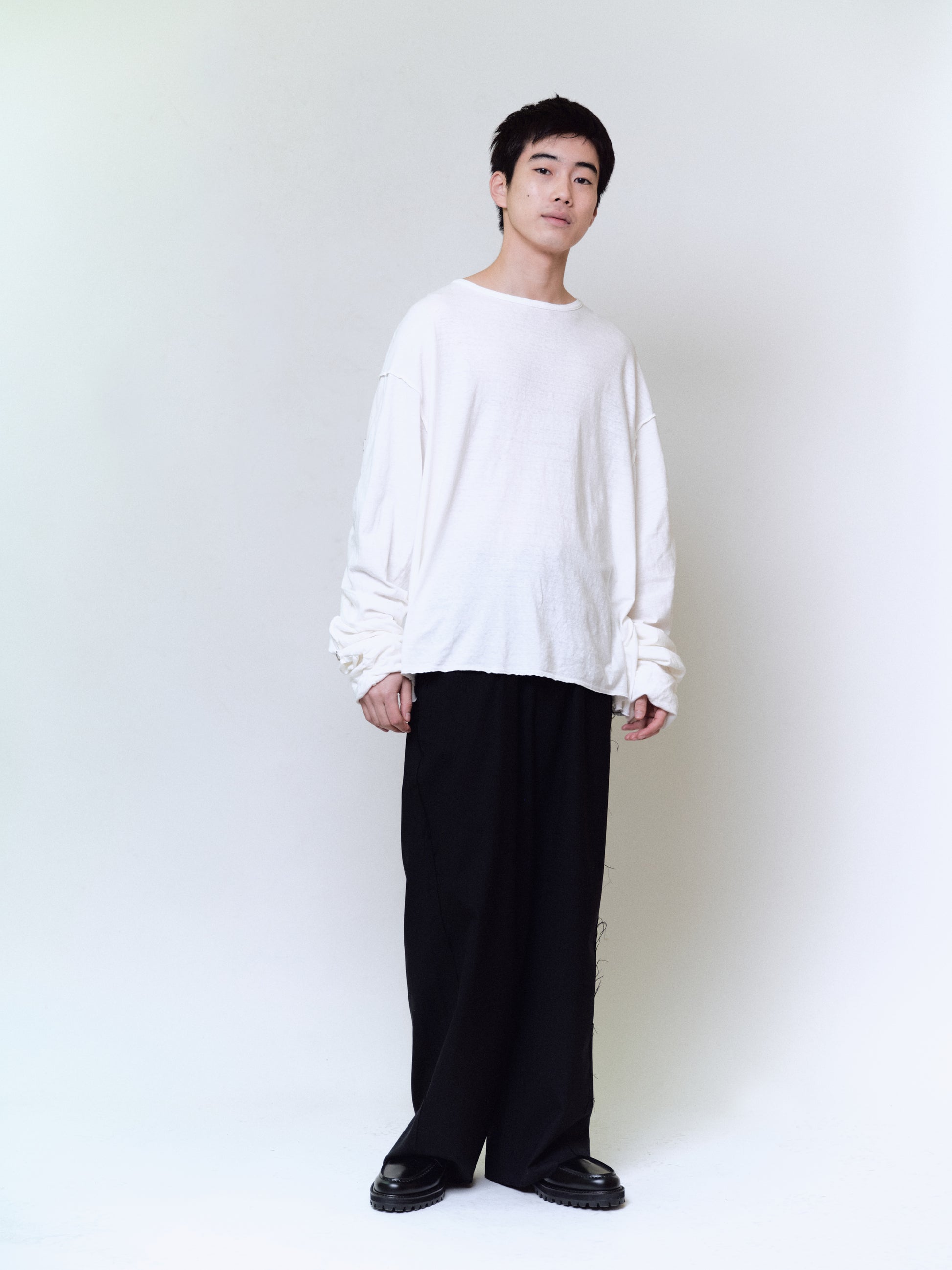GATHERED LONG SLEEVE TEE : MUSLIN