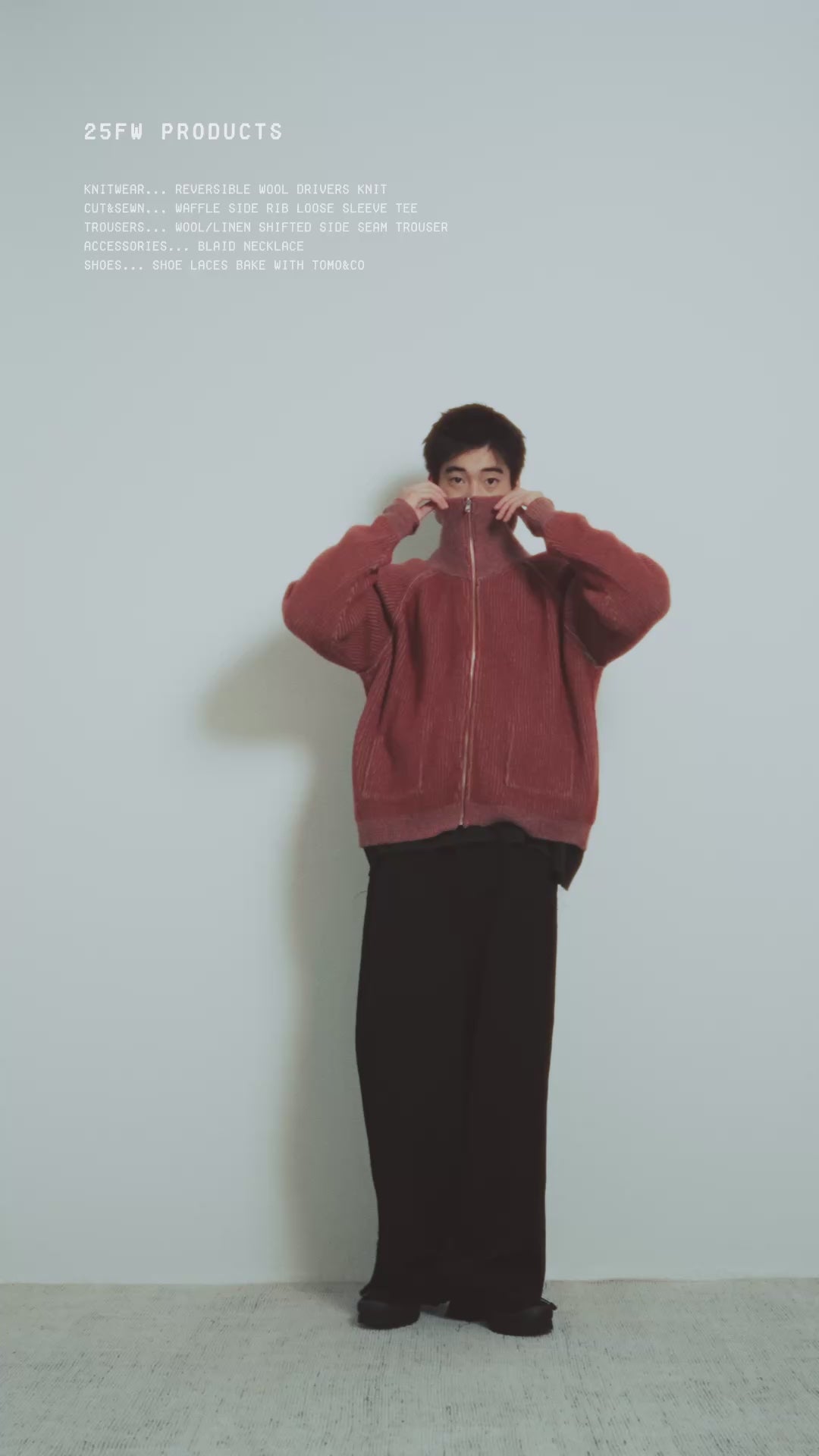 リバーシブル仕様のフルジップドライバーズジャケット。 両畦の色分けによる色違いのリバーシブル。 裏面にパッチポケット。