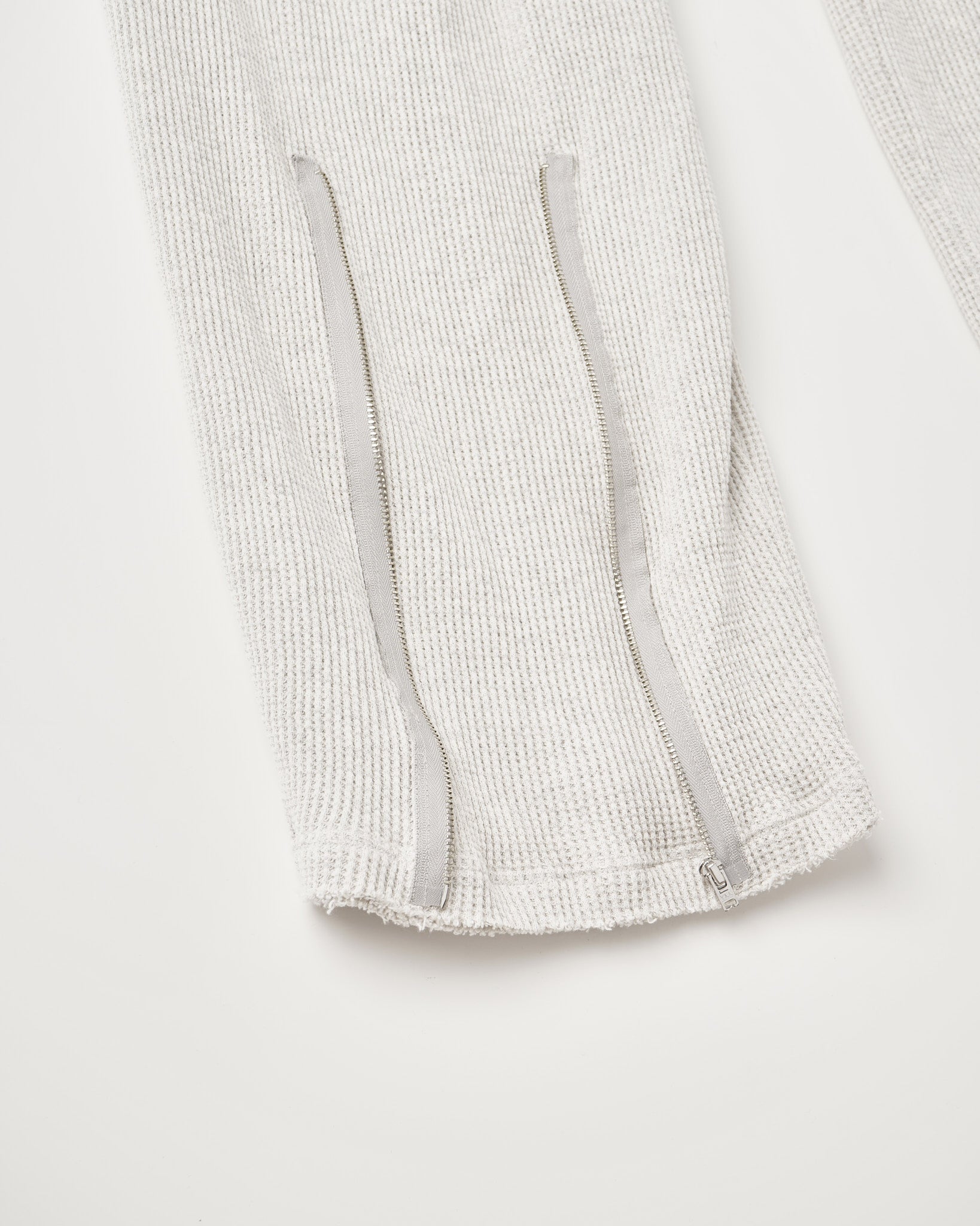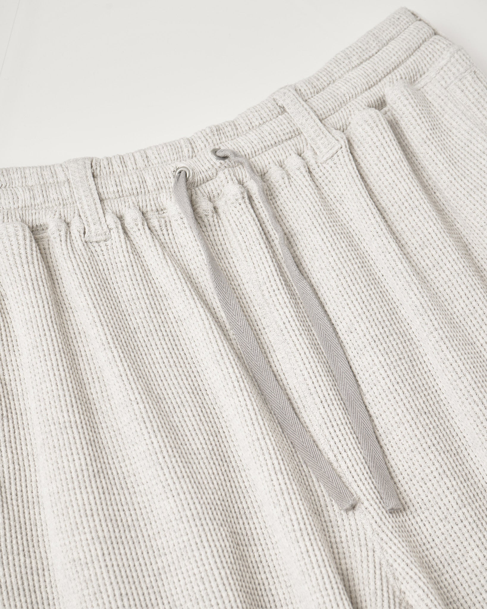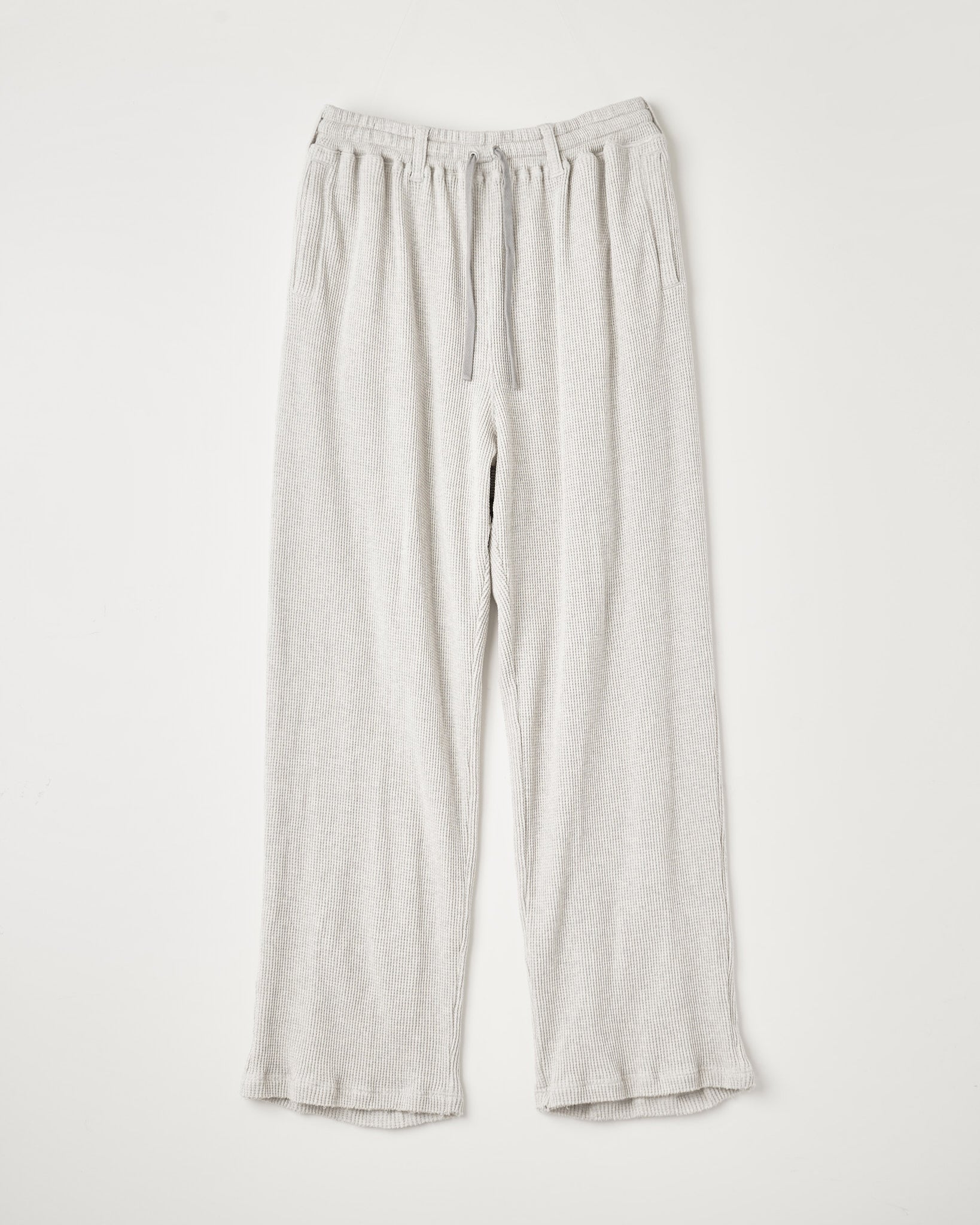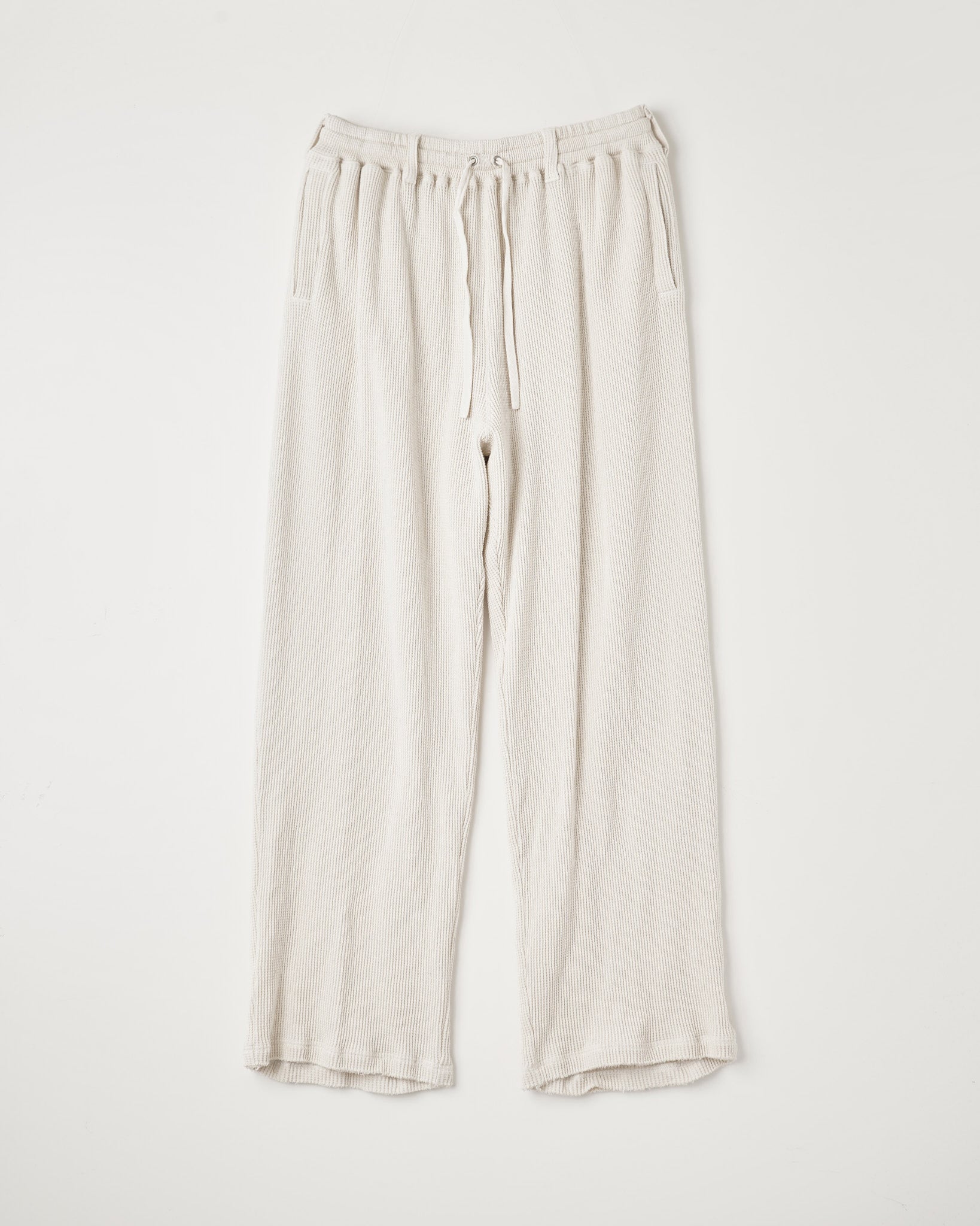 サーマルのボンデージパンツ。 ベルトループ付きのゴムウエスト。裾はカットオフ。 空紡糸を使用したドライタッチなワッフル素材。