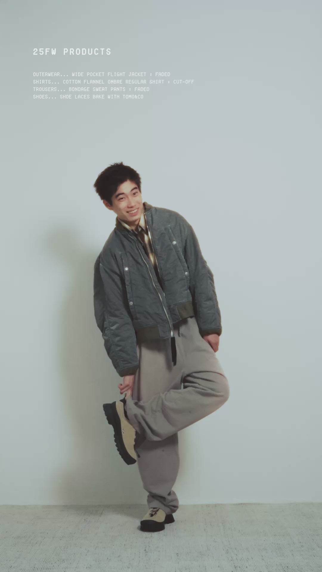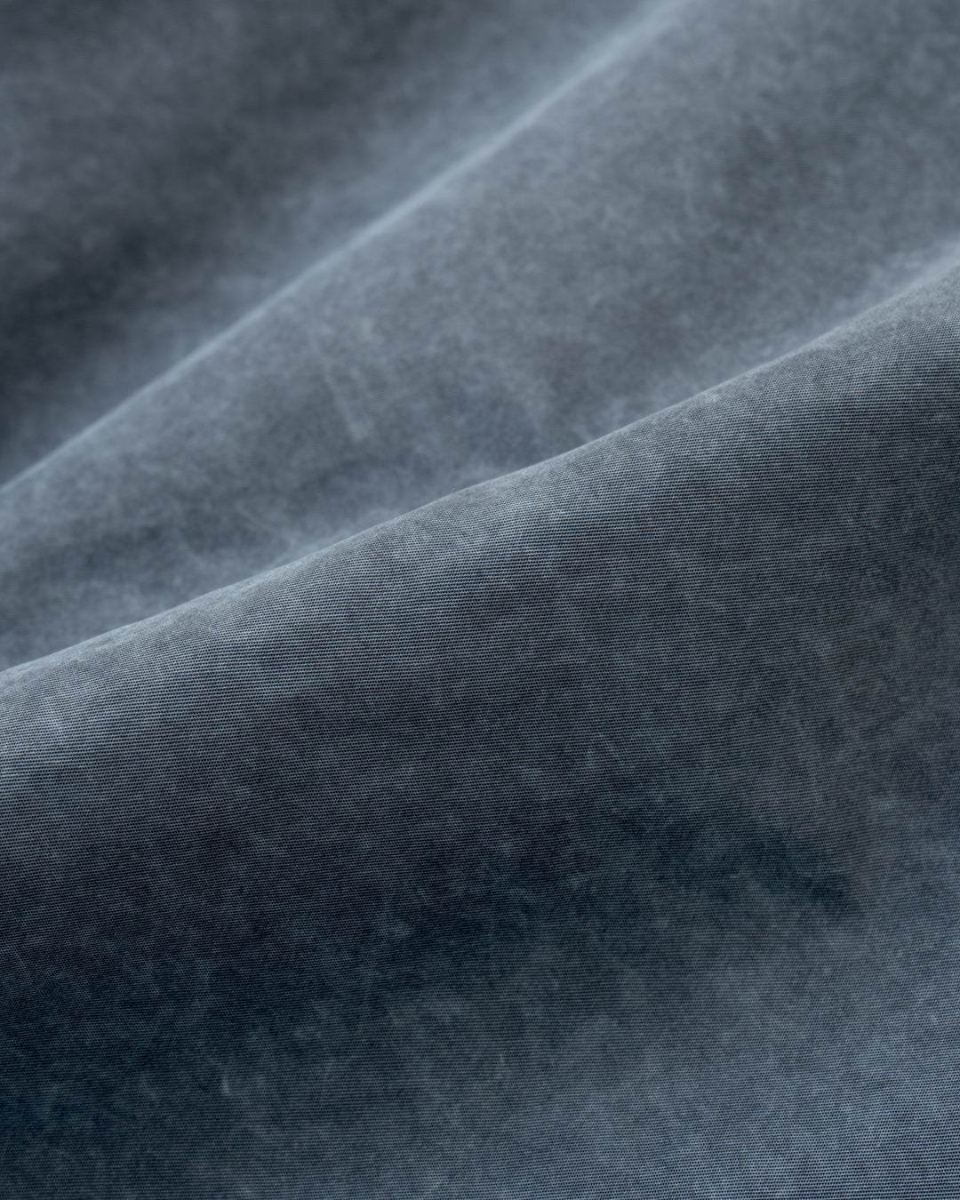 ドローコードでシルエット調整が可能な定番のフライトジャケット。 顔料加工を施したナイロンのミリタリーツイル素材。 縦長に配した2口仕様のポケット。 ハードなバイオウォッシュによるパッカリング。 リブやボディへのエイジング加工。